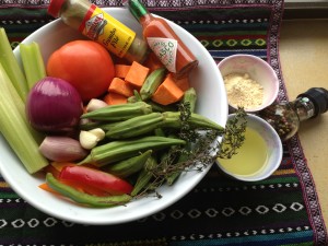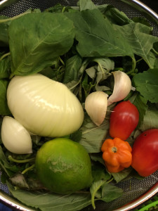 Creole food: Whenever I see my brother Sidney I ask him: ”Did we really eat that or was I dreaming?” Those were the days when food was ‘real’! Ask any Southerner or Caribbean native about Creole food and you will get an earful of flavorful, down-home ingredients and preparations: onions, peppers, garlic, celery, tomatoes, greens, okras, yams, sugar cane, coconut, mangoes, limes, meats, seafood, spices, sauces and seasonings! Sometimes island recipe items are confusing—for example pimentos really mean allspice berries— not those red things in olives!